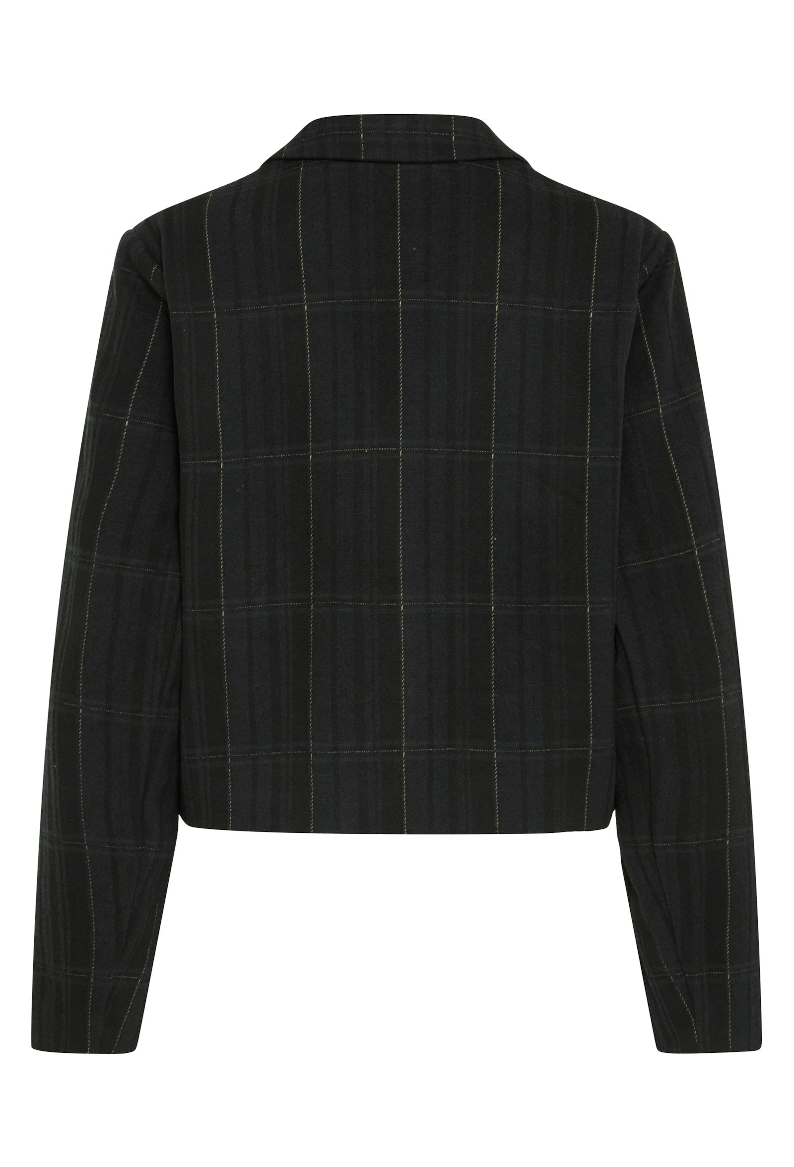 Blazer court à revers classique, fermeture un bouton et coupe structurée. Poches à rabat et motif quadrillé cousu pour un effet graphique subtil.