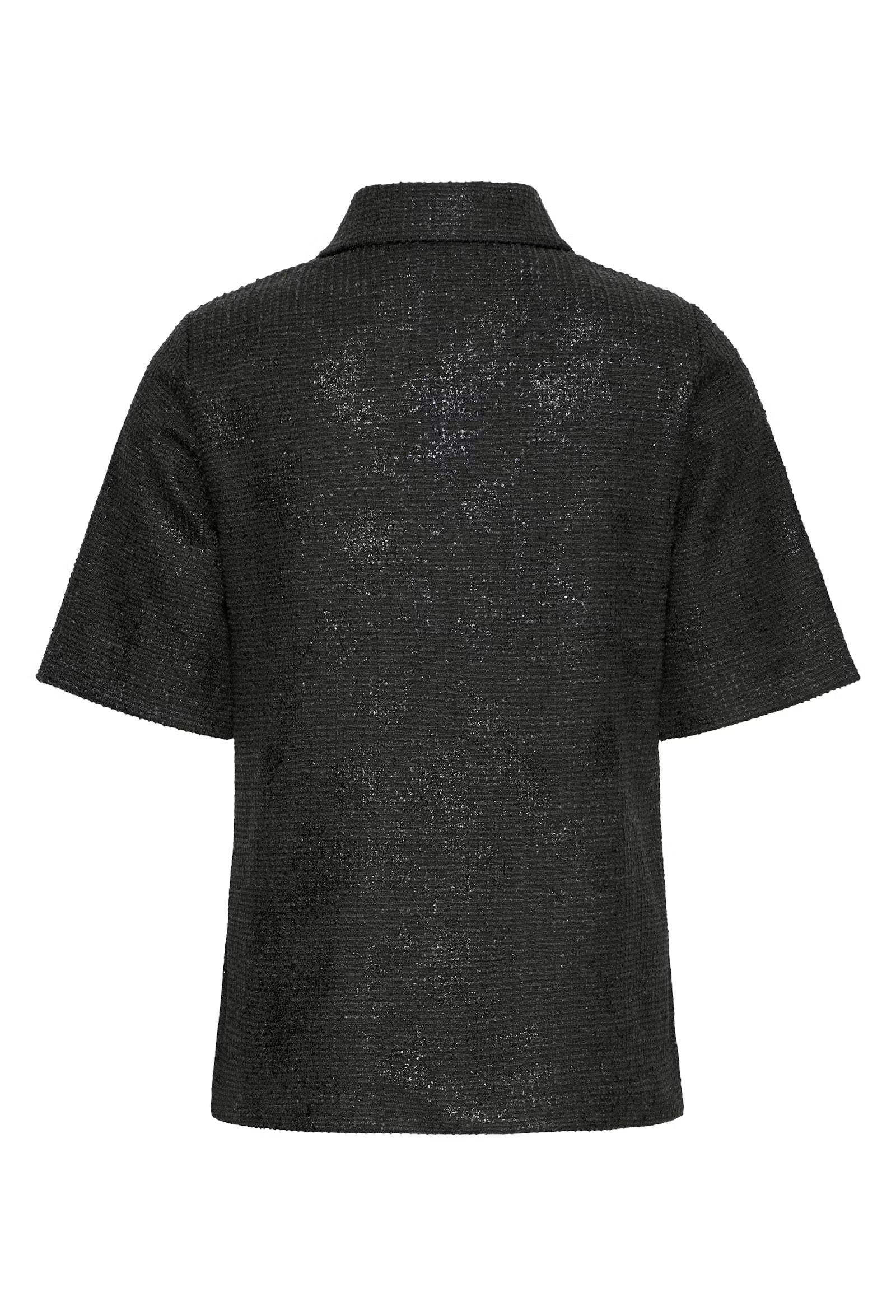 Polo texturé à coupe droite, col structuré, manches courtes et demi-patte avec trois boutons décoratifs. Finition subtilement brillante.