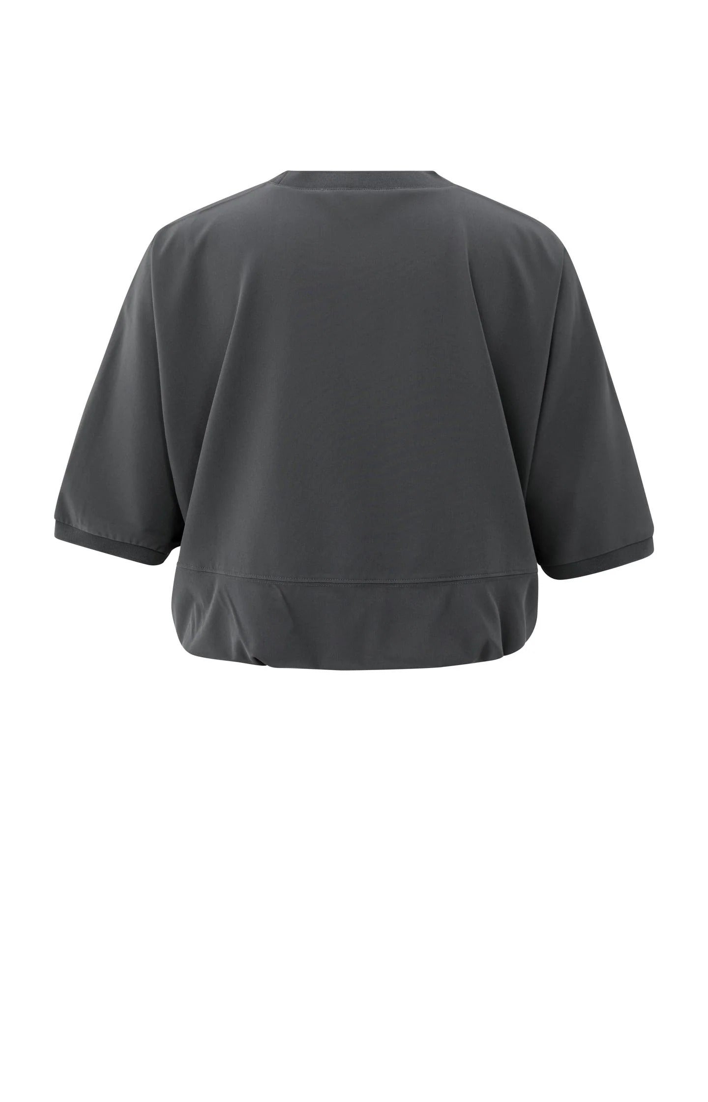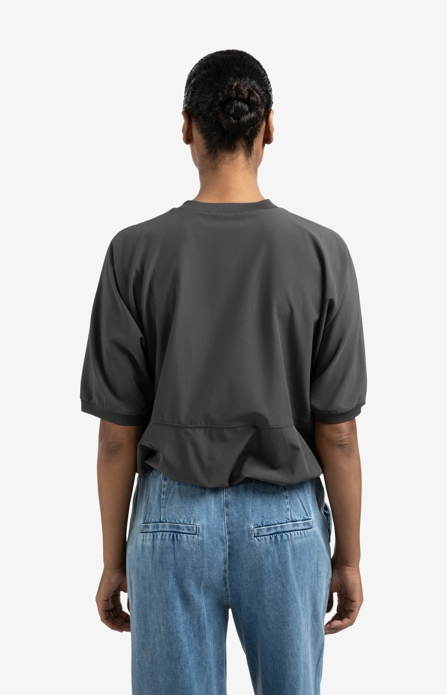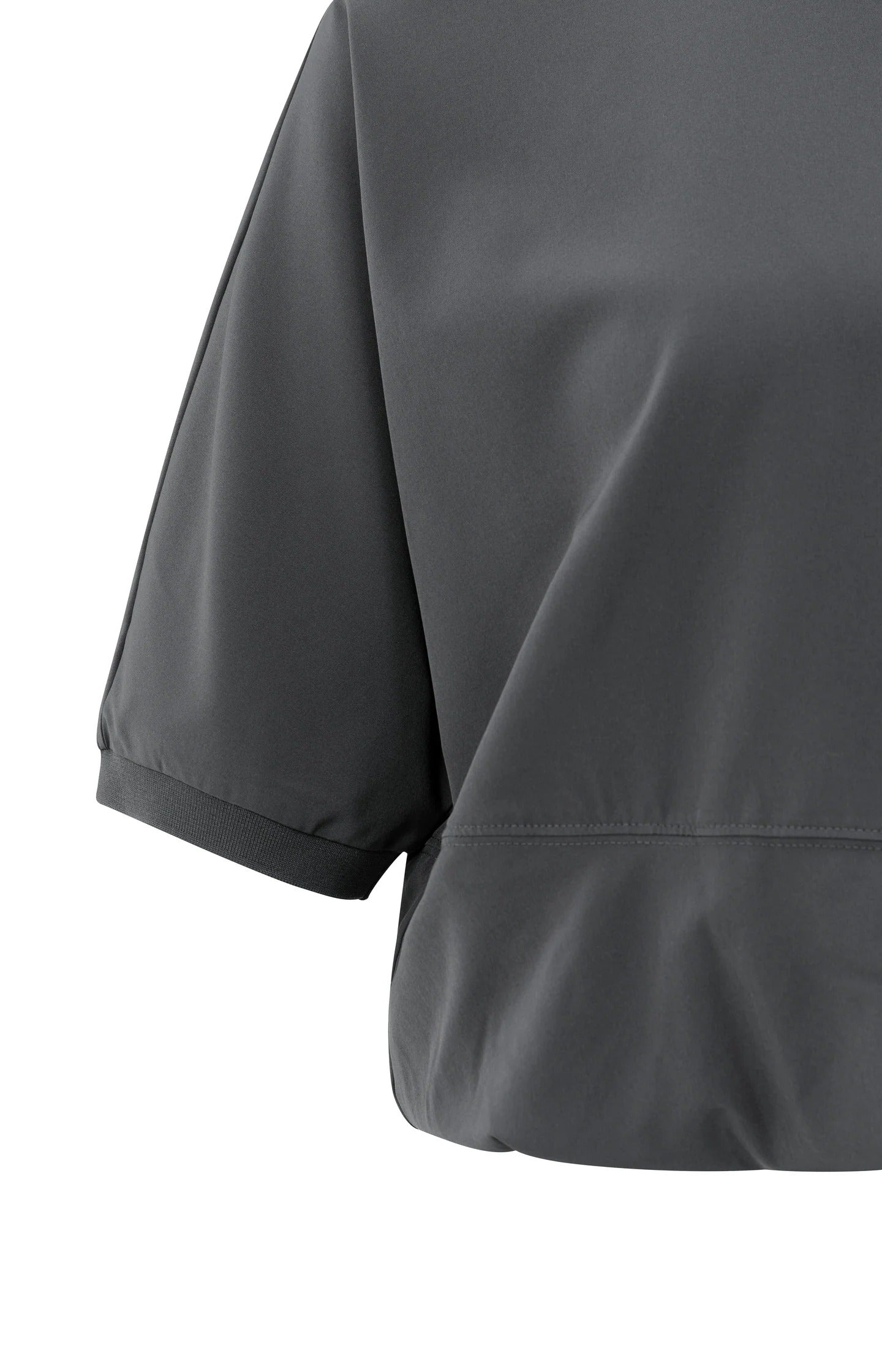 Ce haut moderne a un col rond, des manches courtes et une coupe ample. Les coutures apparentes et les ourlets élastiqués effet ballon apportent à la pièce une touche de fantaisie. Faite à partir d'une matière douce, elle vous offrira un maximum de confort. Un haut chic et polyvalent qui peut se porter facilement dans un look décontracté comme habillé. Le mannequin mesure 176 cm et porte une taille 36.