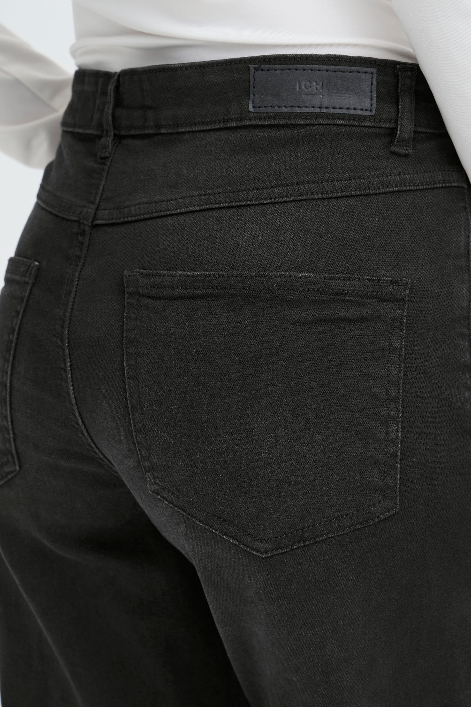 Jean coupe droite, cinq poches classiques et fermeture éclair avec bouton. Finition subtilement délavée, longueur cheville assurant un style épuré.