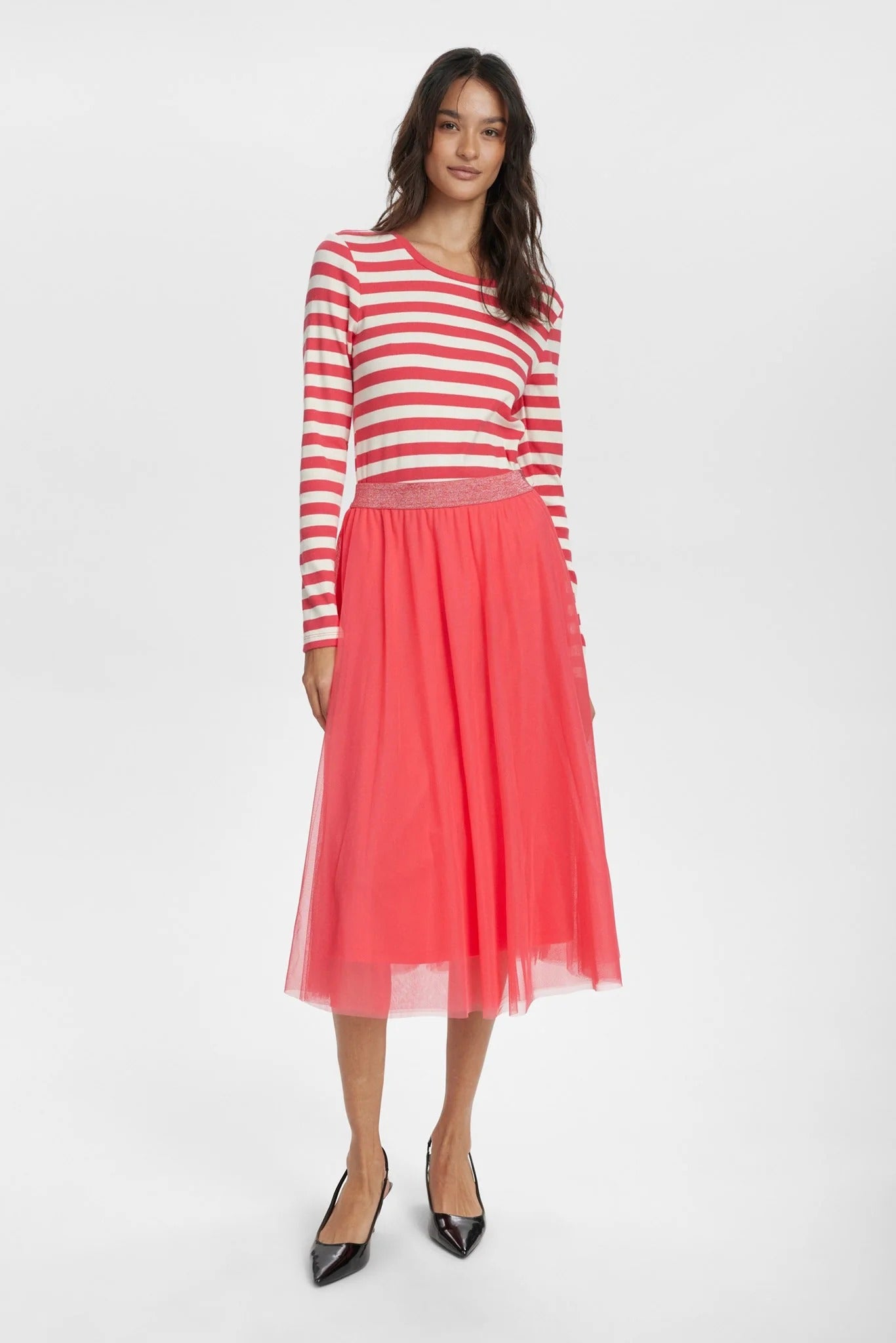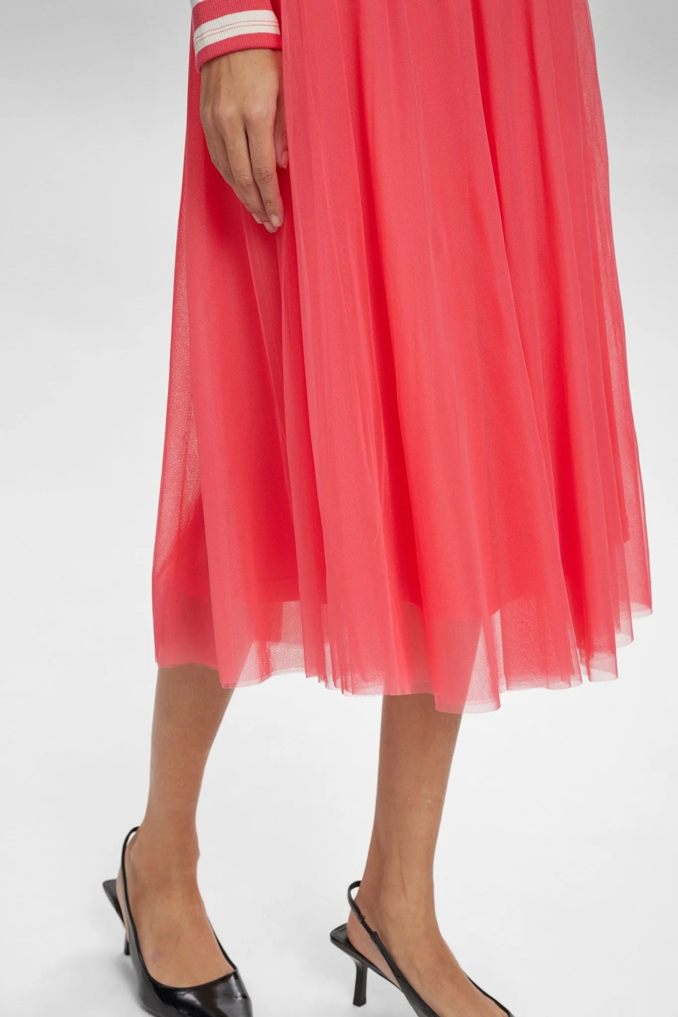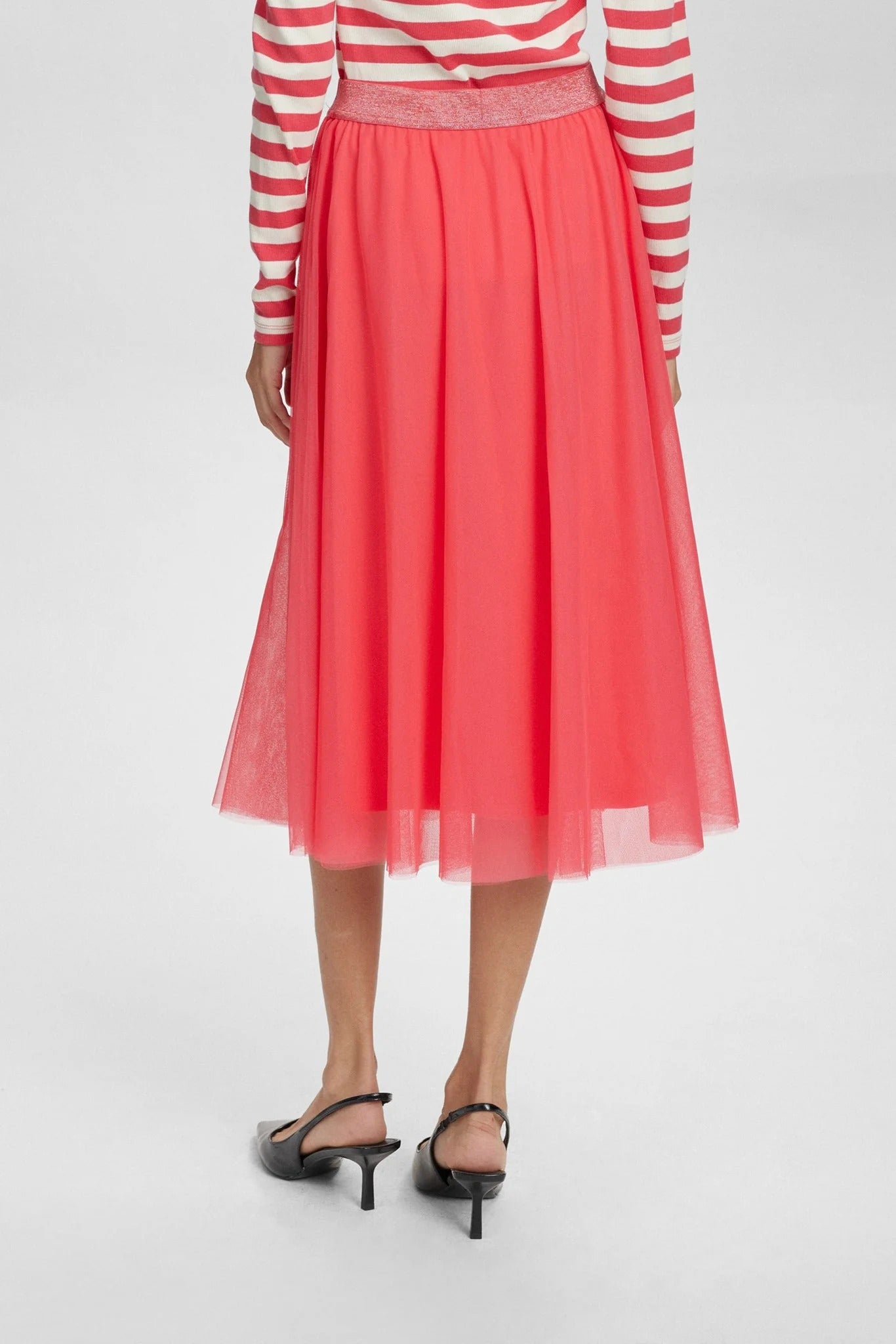 Cette jupe mi-longue, de couleur géranium, est entièrement doublée en polyester. Son motif uni et sa taille standard en font une pièce polyvalente. elle est agrémentée d’un style plissé.