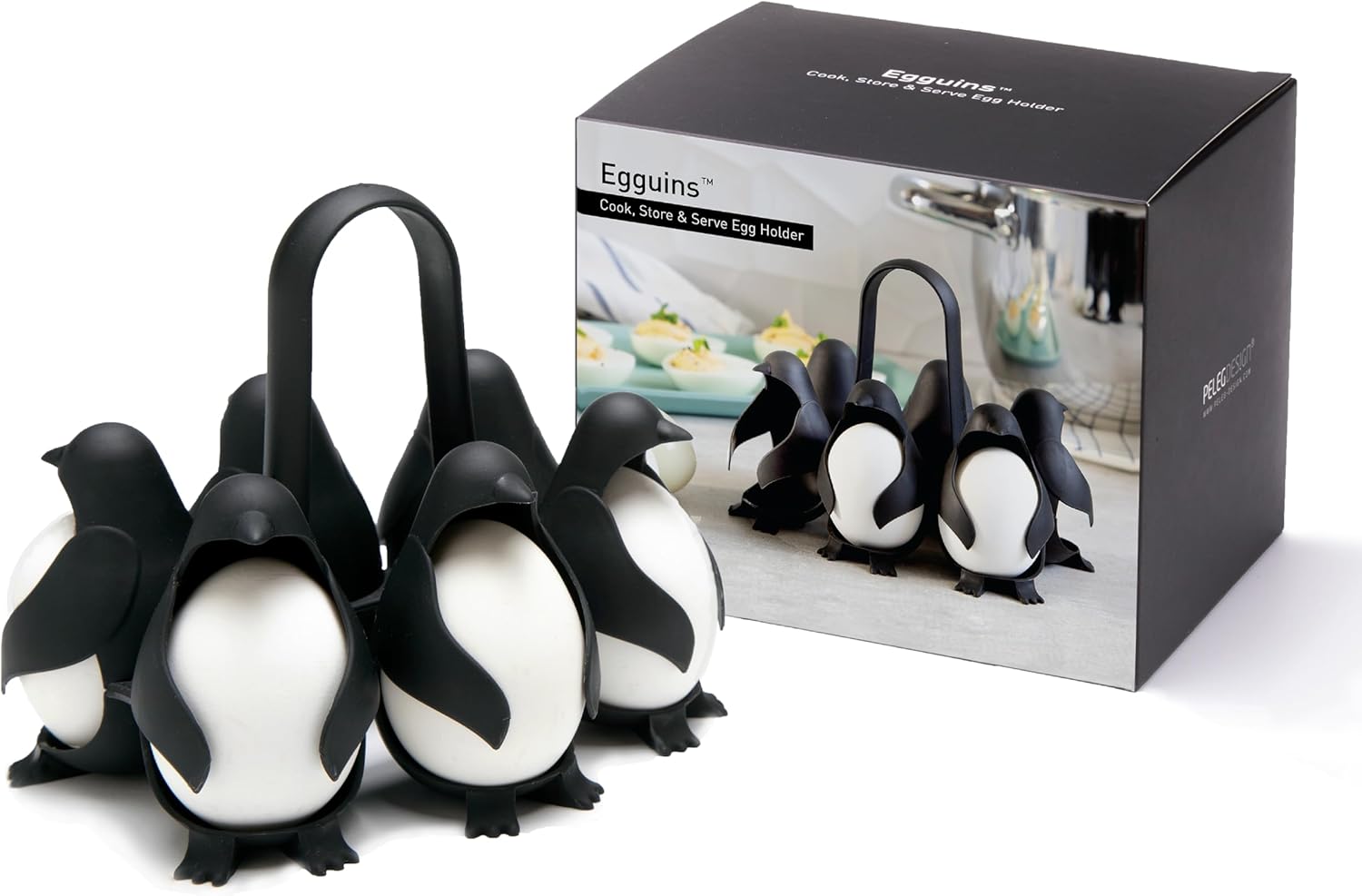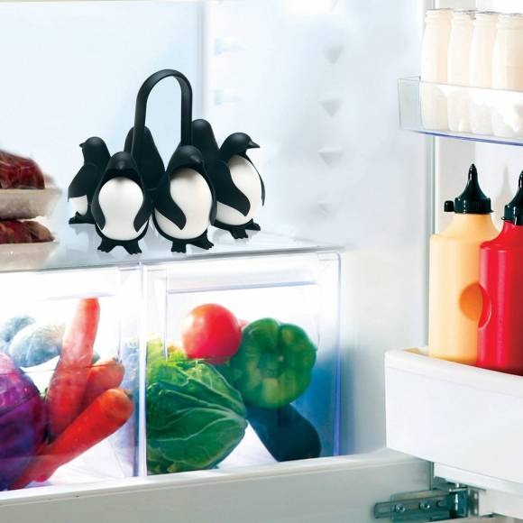 Il vous arrive de vouloir cuire 2/4/6 œufs d’un coup, à la coque ou durs ? Cela devient facile avec Egguins. Cette petite colonie de pingouins va conserver jusqu’à 6 œufs ensemble dans l’hiver arctique de votre réfrigérateur ou dans les sources chaudes de votre casserole. Faites bouillir, servez et conservez les œufs de la façon la plus élégante et pratique possible.