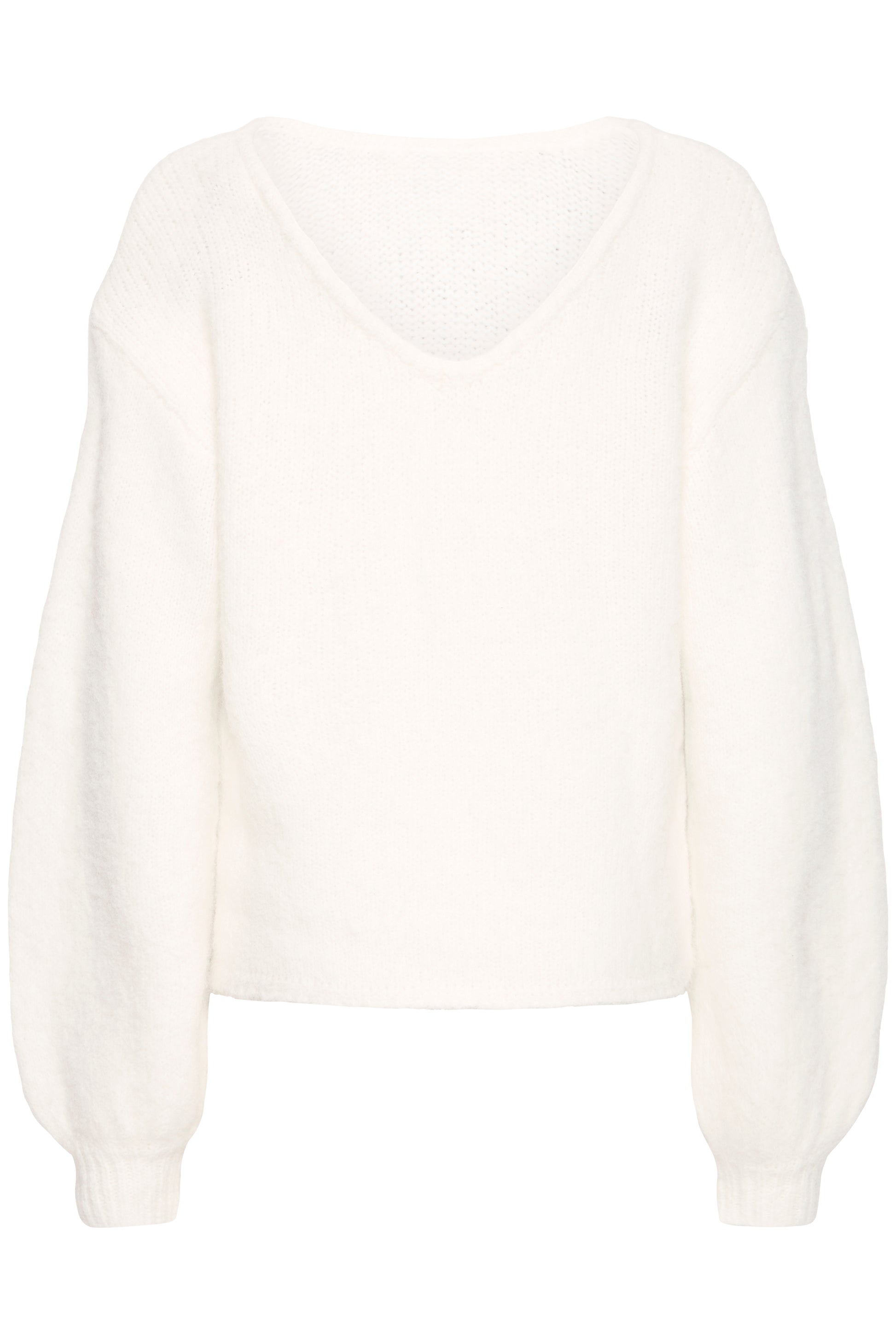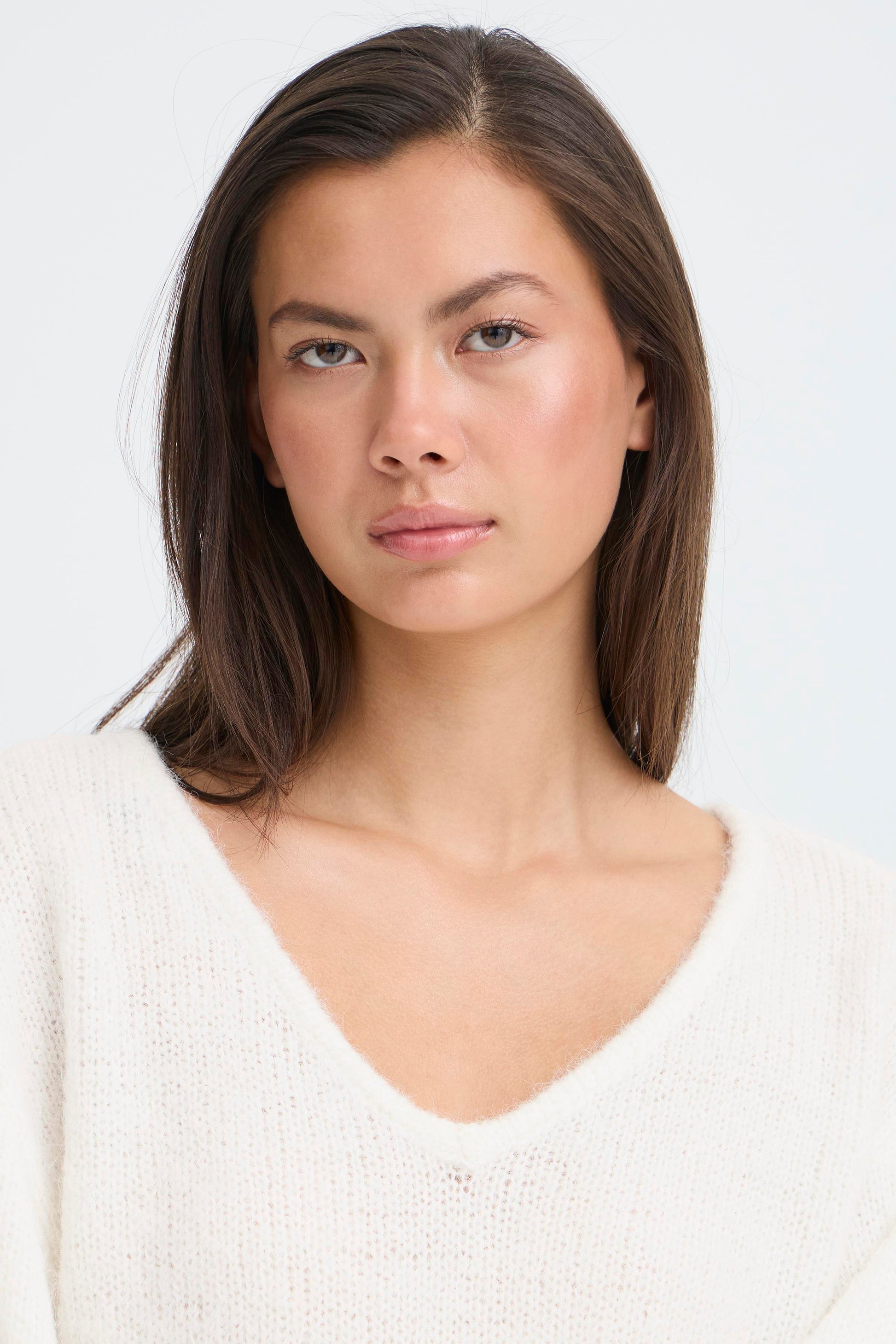 Ce pull en maille douce à encolure en V offre une coupe ample avec des manches longues et volumineuses, et des poignets resserrés.