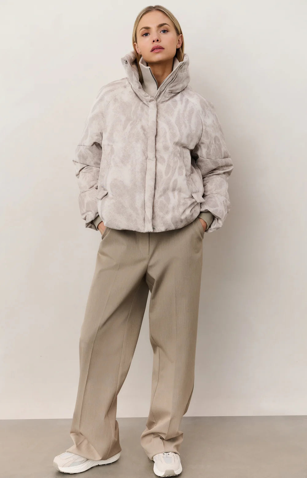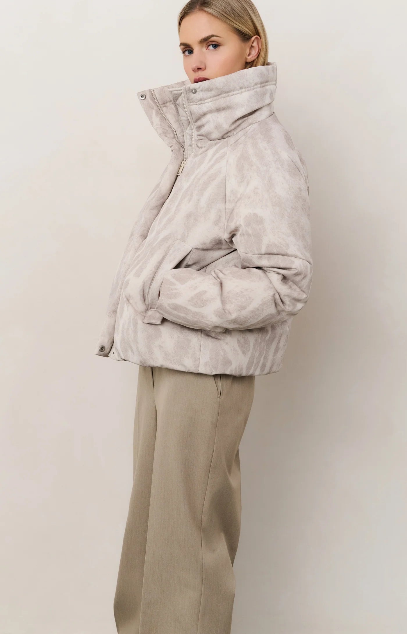 Cette veste courte matelassée a un col montant, une fermeture éclair avec une patte de bouttonage à boutons pression et un motif abstrait qui recouvre entièrement la pièce. La coupe droite et la matière douce matelassée garantissent du confort et de la chaleur tandis que les lignes épurées de la coupe et son motif discret apportent un petit truc en plus tendance. La veste d'extérieur parfaite pour un look chic et décontracté. Le mannequin mesure 175 cm et porte une taille 36.